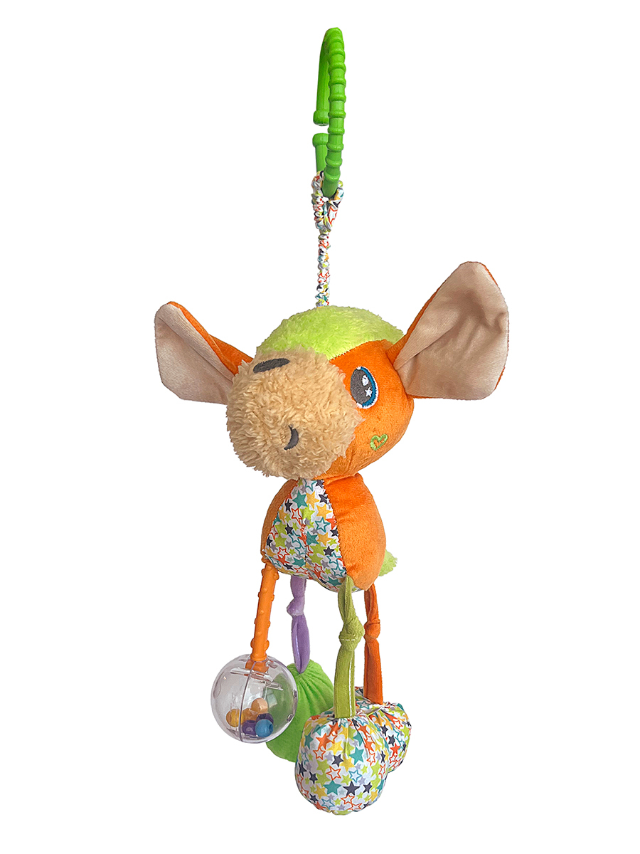 Bebeğin kas gelişimini ve motor becerilerini teşvik eden bu oyuncak, taşıma klipsi, hışırtılı ve çıngıraklı peluş tasarımıyla, aktivite halıları ve oyun matlarıyla uyumludur.Ayak kısmında top şeklinde dişlik,soft bacak ,halkalar ve çıngıraklı top vardır.Diğer ayakları da hışırtılı top şeklindedir.