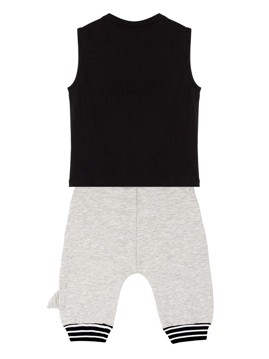 2 parça erkek çocuk t-shirt ve kapri pantolon takım. Pamuklu penye kumaştan baskılı, kolsuz t-shirt. Ve takımın tamamlayıcısı düşük ağ kesimli, pamuklu penye kumaştan kapri boy pantolon. Pantolon 2 ceplidir. Üzerinde köpekbalığı baskısı vardır. Köpekbalığının yüzgeci 3 boyutlu olarak pantolonun yanına dikilmiştir. Tüm Denokids ürünleri çocuk güvenlik kurallarına uygun üretilmekte ve tek tek iğne dedektörlerinden geçmektedir.