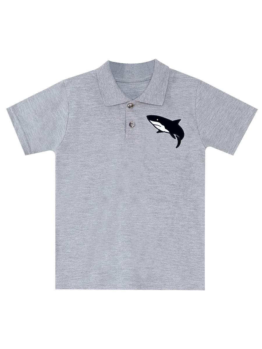 2 piece set. Cotton, grey melange pique polo shirt. Has a shark embroidery on. Shorts is made of cotton, twill fabric. Has 2 front and back pockets. All MSHB&G products are manufactured within the Kids Safety Guideline. Has been inspected b