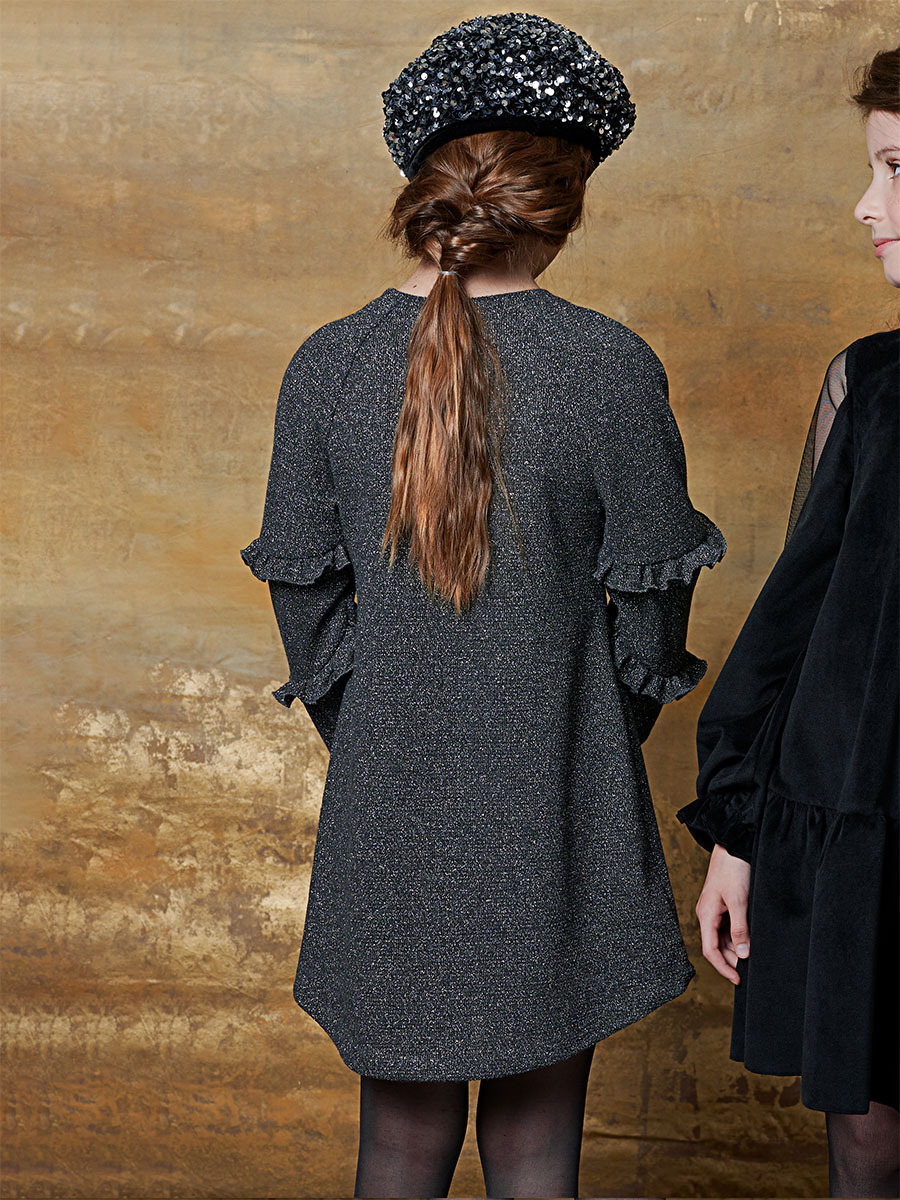 Fırfır Detaylı Sehshe Elbise Simli Örme Kumaştan Tasarlanmıştır. Astarsızdır. %50,5 Polyester %26,5 Viskon %19Metalik %4Elastan İkincil Kumaş %96,5 Viskon %3,5 Elastan