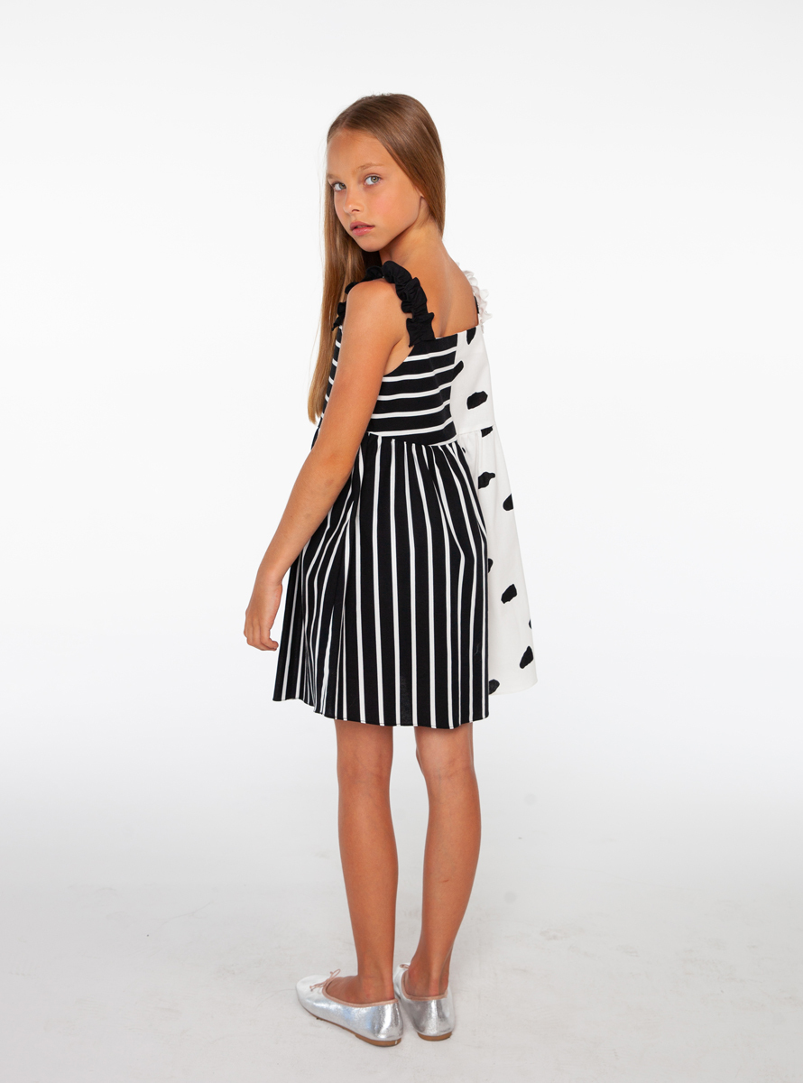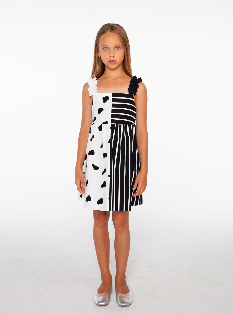 Siyah Beyaz Desenli, Pamuk Kız Çocuk Elbise
