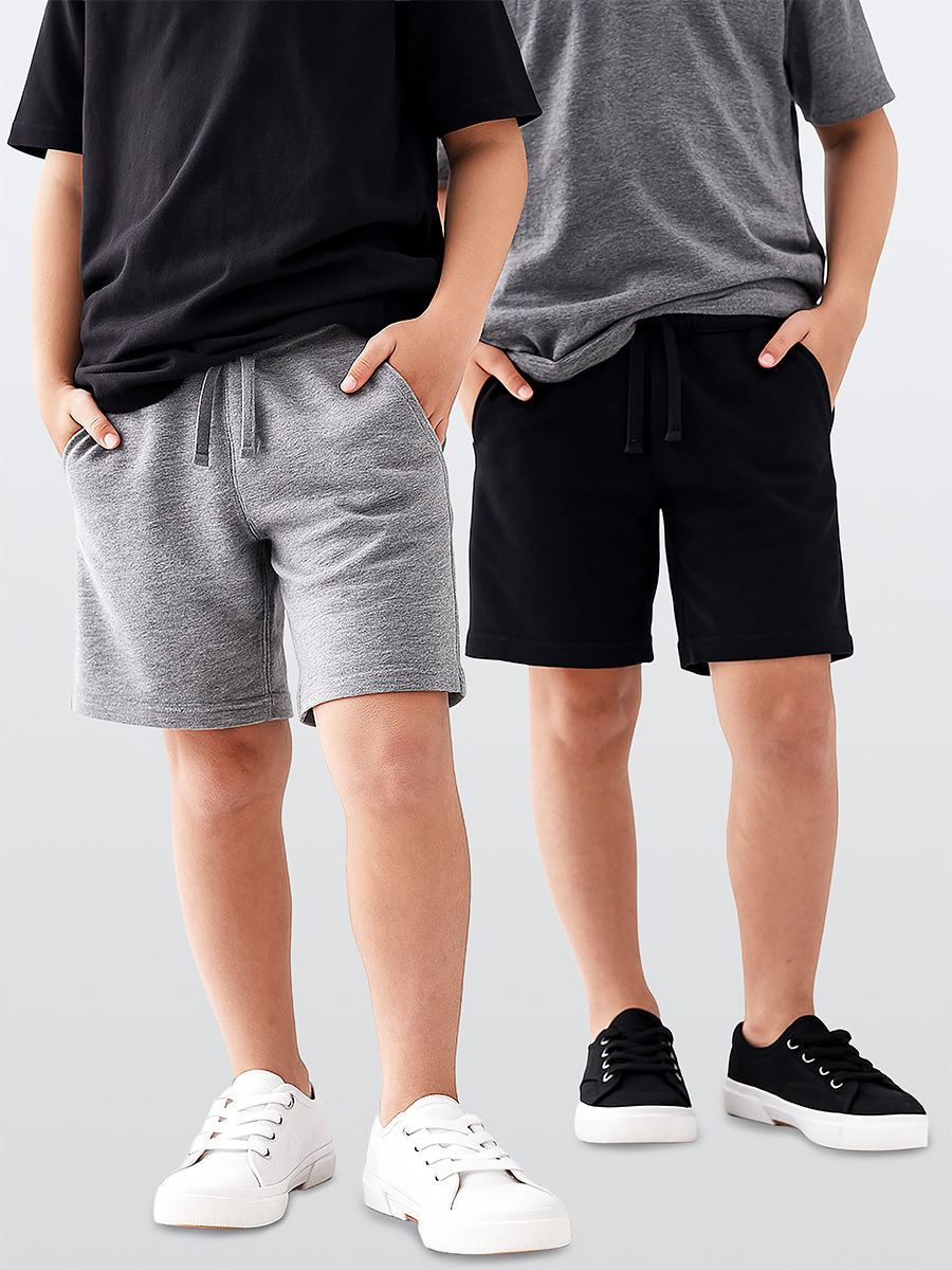 Erkek Çocuk Şort 2'li Paket Siyah Şort Gri Şort