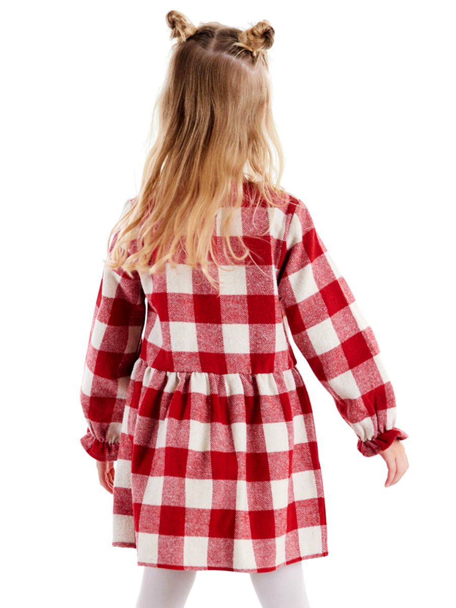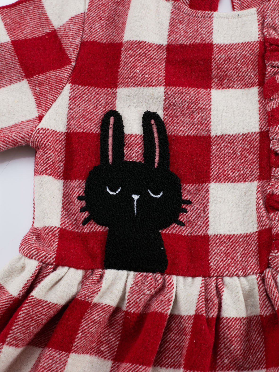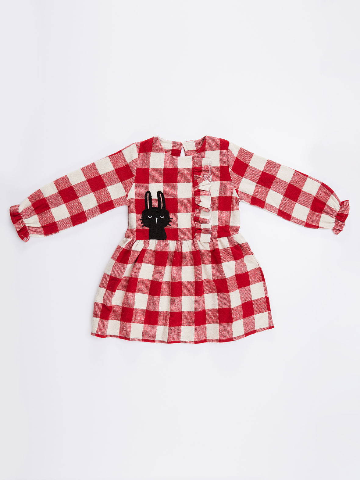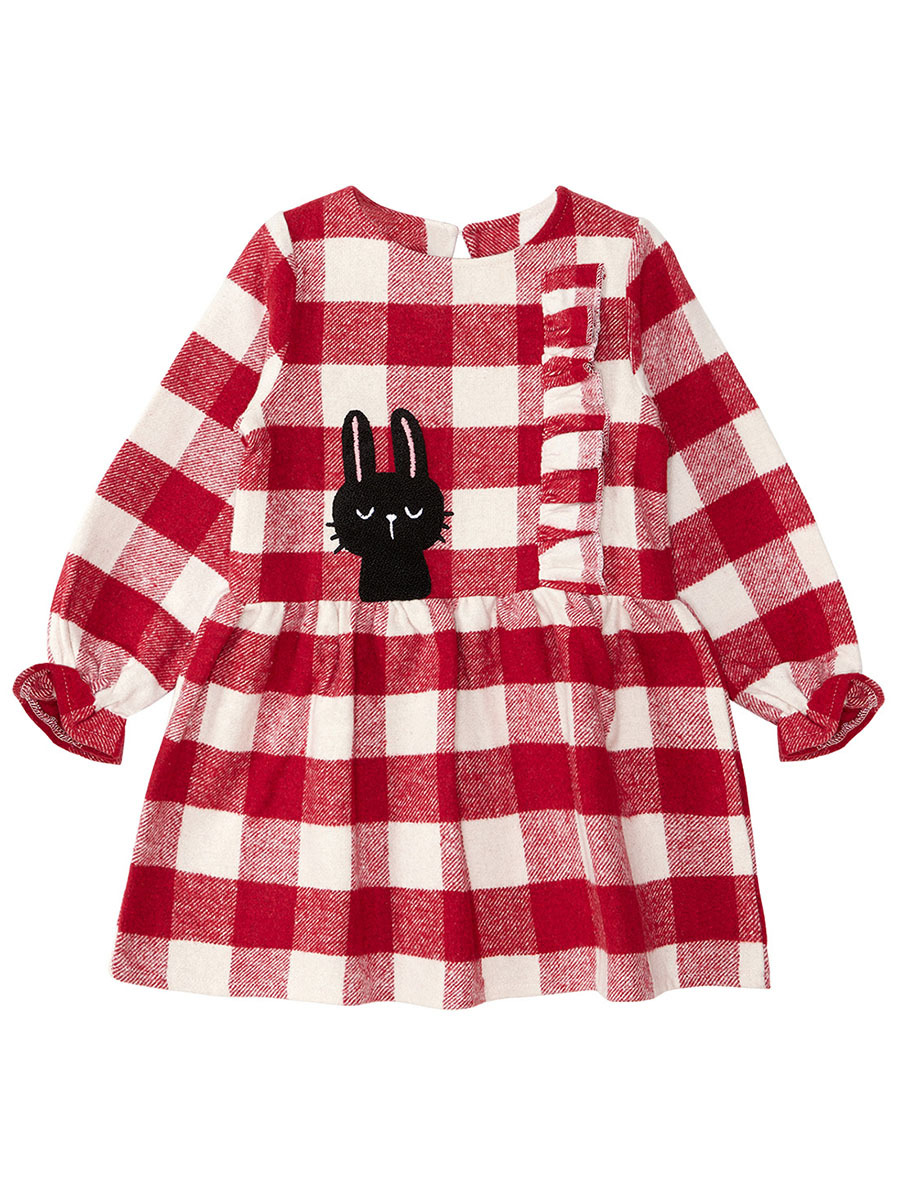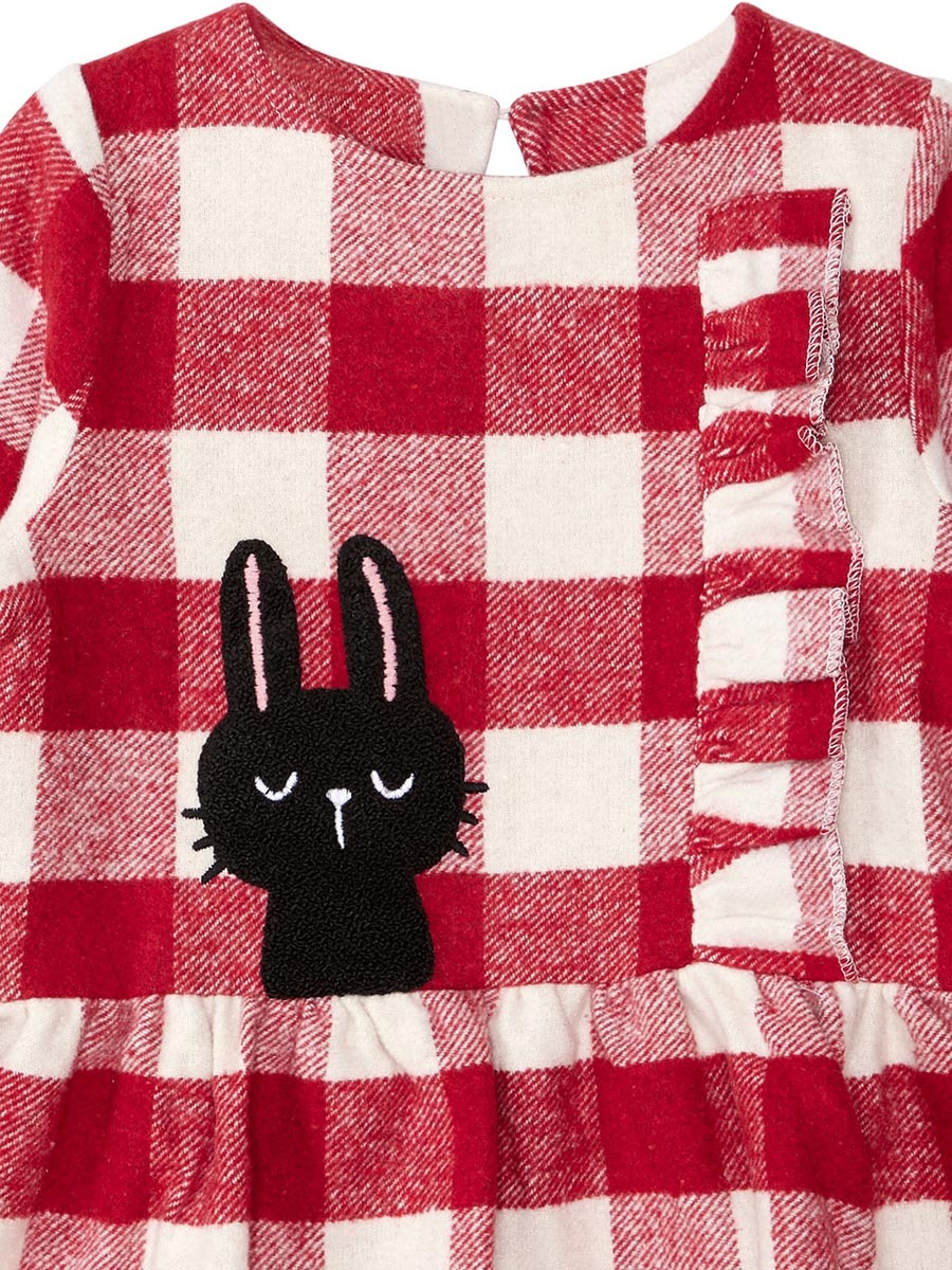 Ekose, dokuma kumaştan, tavşan aplikeli, hem eğlenceli hem şık, kışlık elbise. %58 Pamuk %36 Polyester %5 Akrilik %1 Viskoz