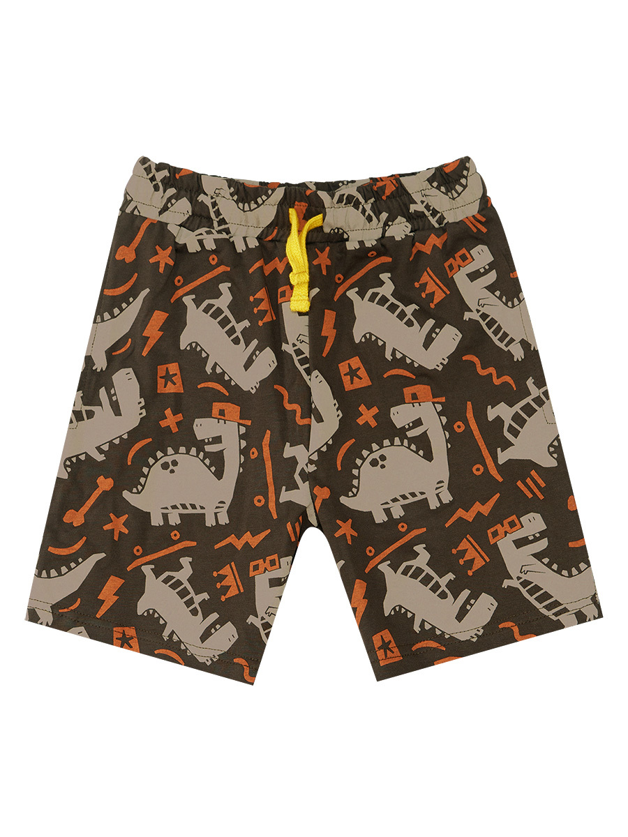 2 piece set. Allover dinosaur pattern printed t-shirt and shorts. Shorts has 2 side pockets. Elasticated waistband and strings on. All Denokids Products are manufactured within the Kids Safety Guideline. Has been inspected by metal detector
