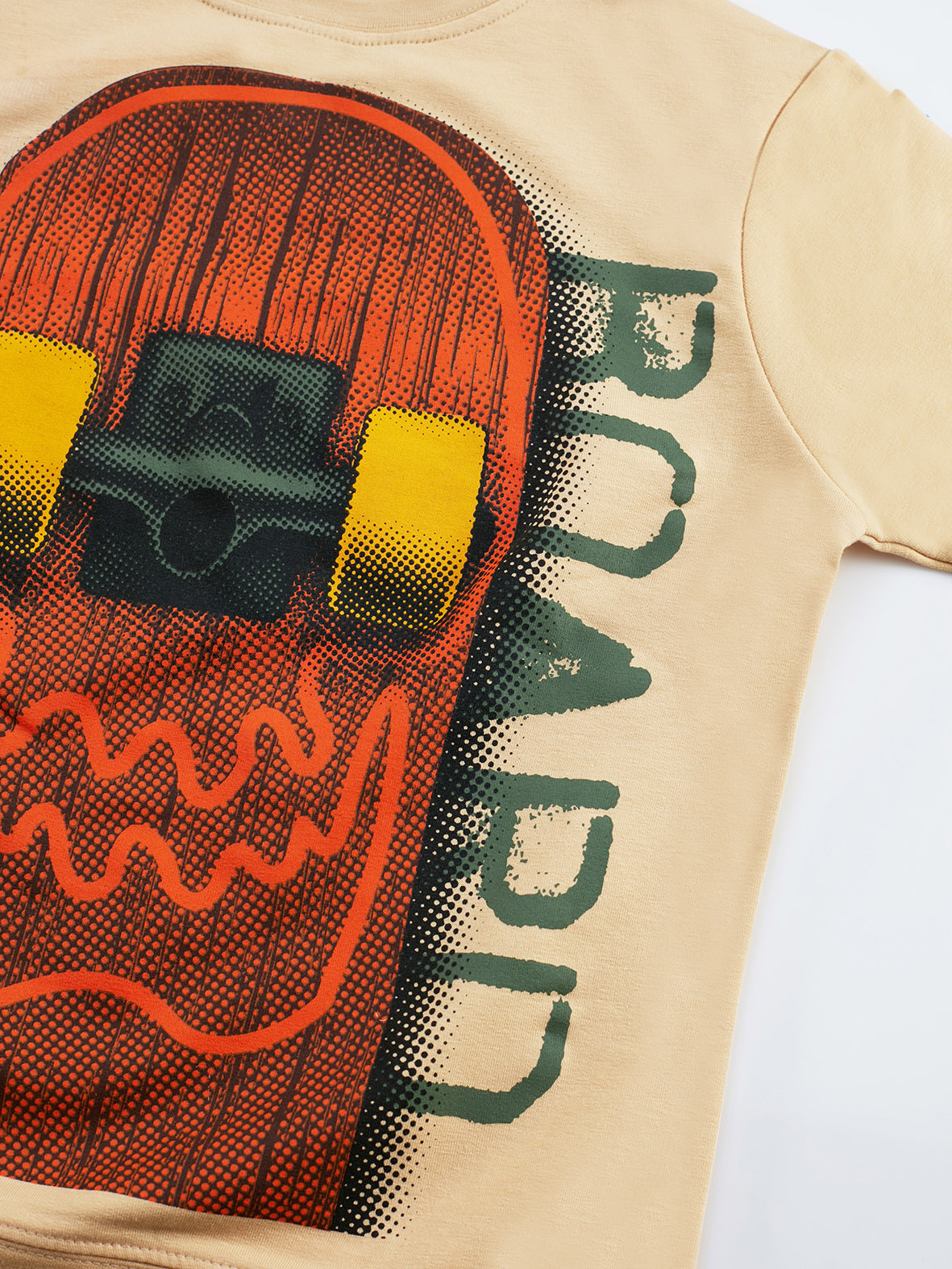 2 piece Tracksuit. Printed beige sweatshirt and its matching khaki jogger pants. Bottom;%65 Cotton %35 polyester,Top;%65 Cotton %35 polyester