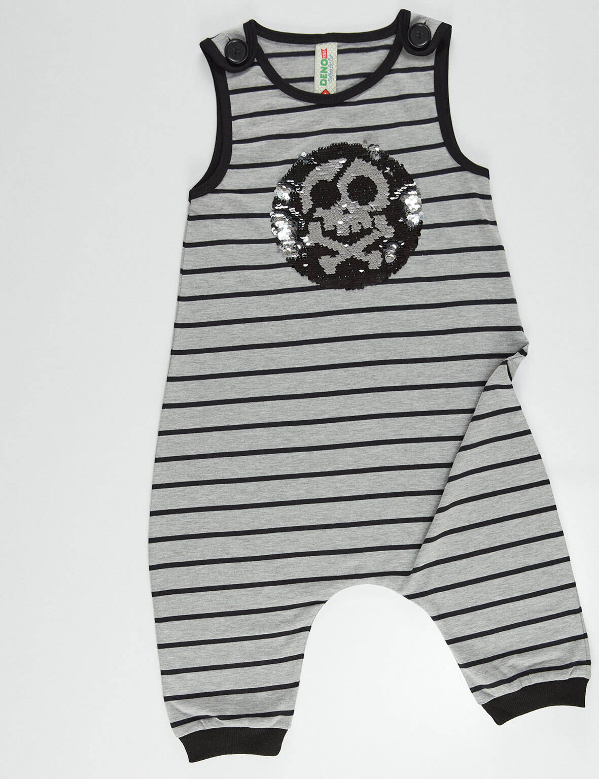Interactive product. The sequins are reversible. Black striped grey overall. Easy to wear on&off. %60 cotton %35 polyester %5 elastane