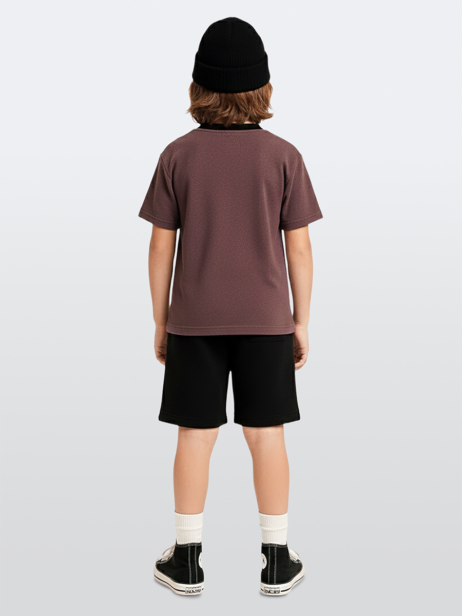 Erkek Çocuk Takım Gülen Yüz Baskılı %100 Pamuk T-Shirt Siyah Şort Yazlık Takım