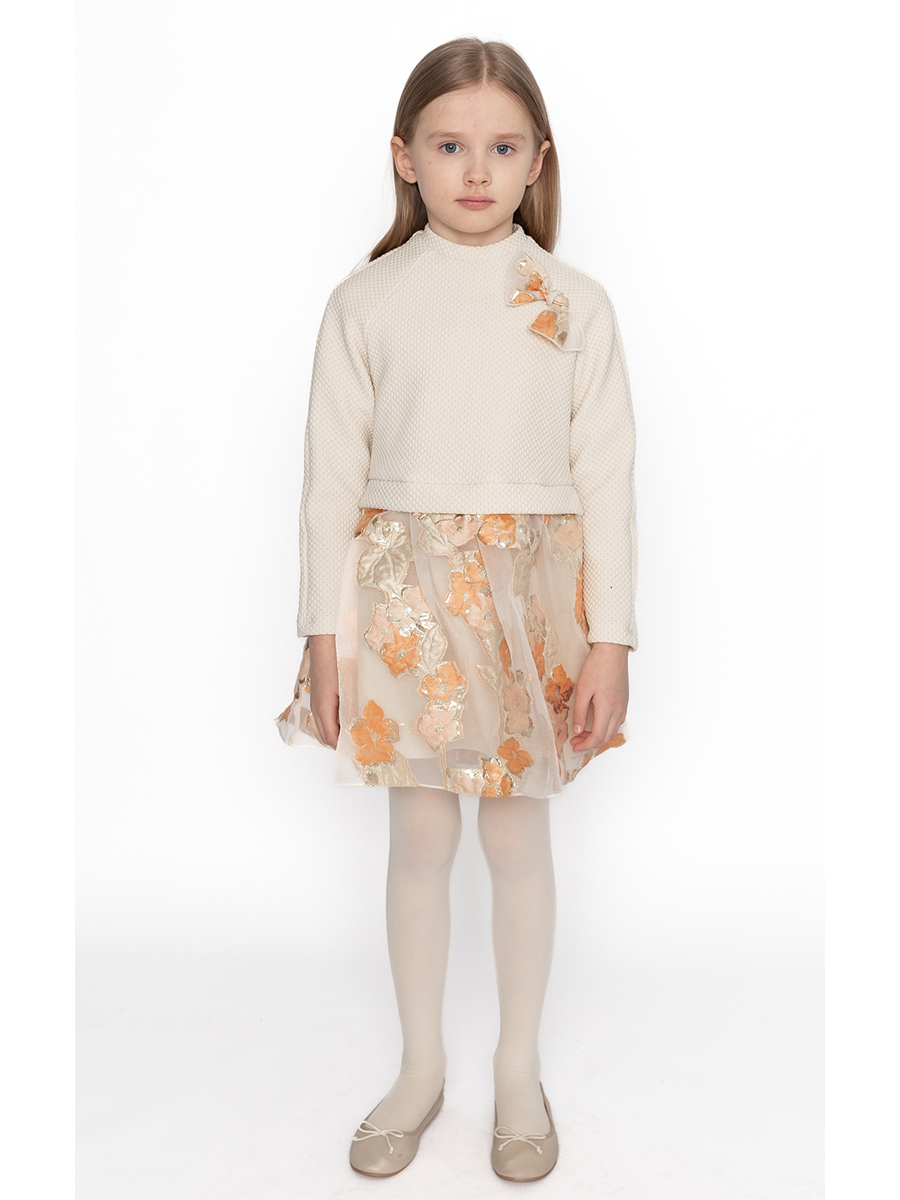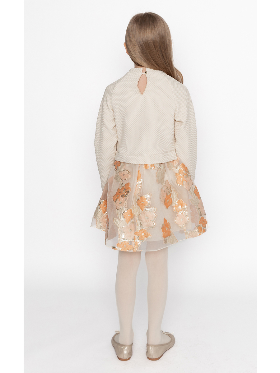 Üst beden simli örme kumaştan etek kısmı somon renkli çiçekli jakar kumaştan tasarlanmıştır %95 Polyester %5Metalik İkincil Kumaş %95Polyester %5Metalik %100Astar