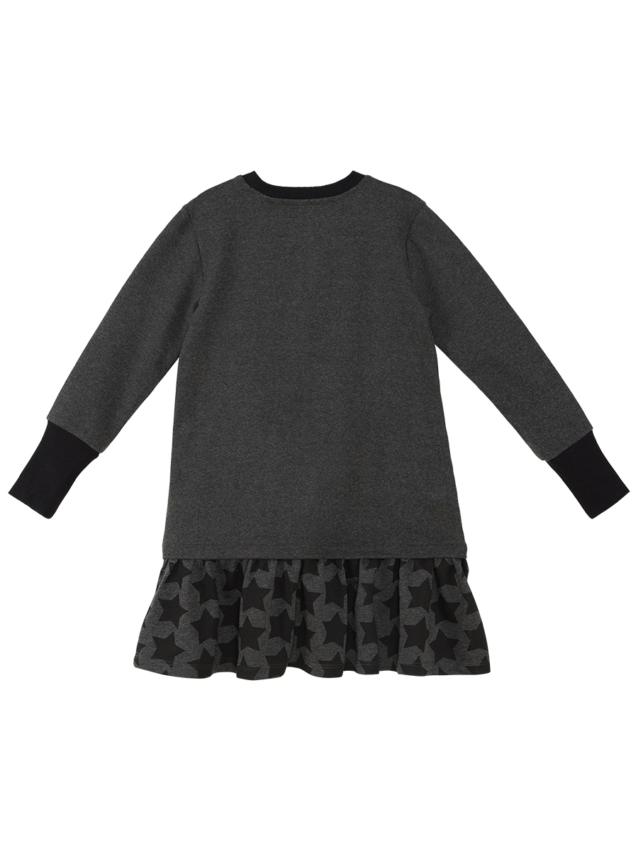 Designed for unicorn lovers. Long sleeve, grey, cotton blend dress with a unicorn print on. Frills has stars print on. Elasticated wrist. All MSHB&G products are produced within Kids Safety Guidelines. To avoid any needles or metal debris,
