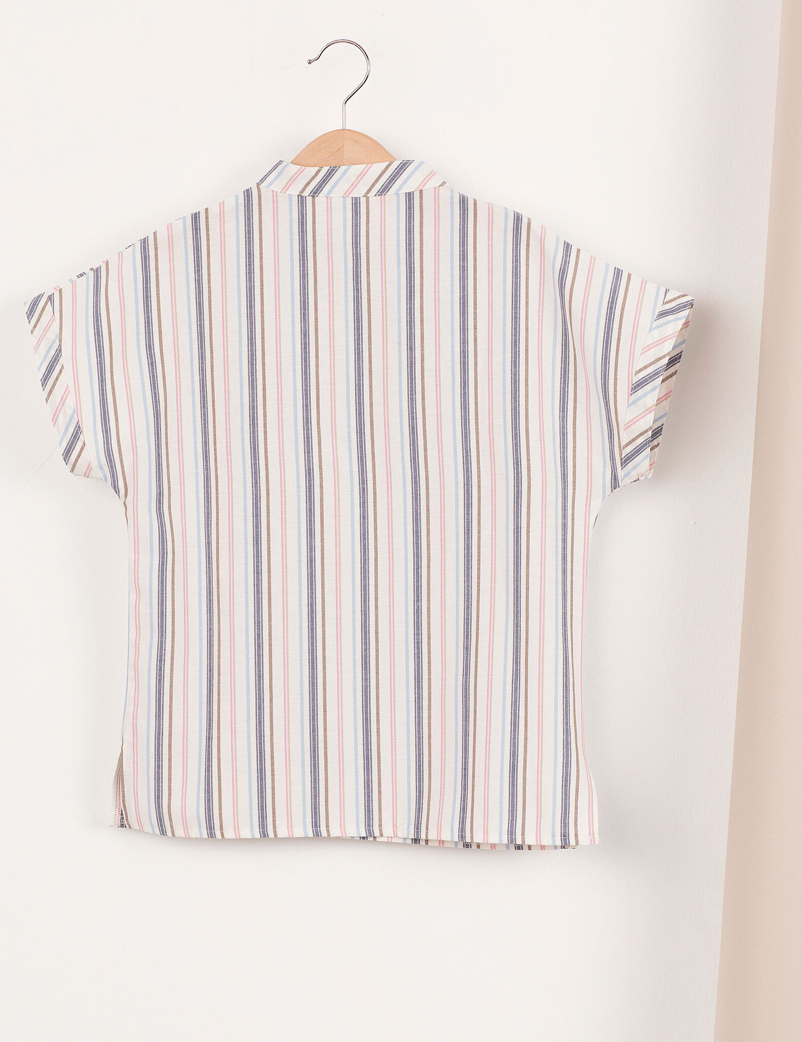 Special-cut sleeve, striped boy shirt. %100 cotton