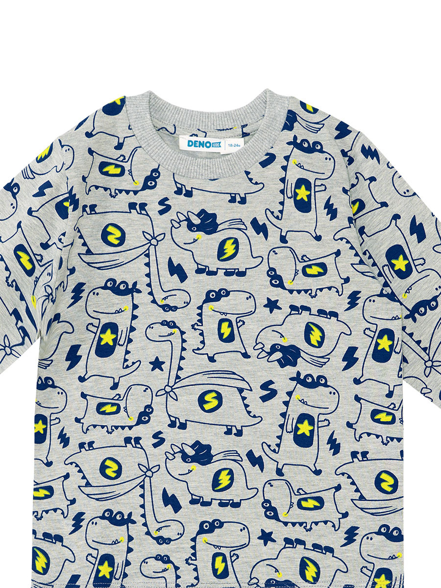 2 parça erkek bebek pijama takım. Üzeri dinozor baskılıdır. Omuzdaki çıtçıt sayesinde kolayca giyilip çıkarılır. Pijama altının beli ve bilekleri lastiklidir. Tüm Denokids ürünleri Çocuk Güvenlik Kuralları'na uygun olarak üretilmektedir. Bebeğinizin tenine bir zarar gelmemesi için tüm ürünler, iğne kırıklarını tespit edebilen metal dedektörlerinden geçirilmektedir. %60 Pamuk %35 Polyester %5 Elastan