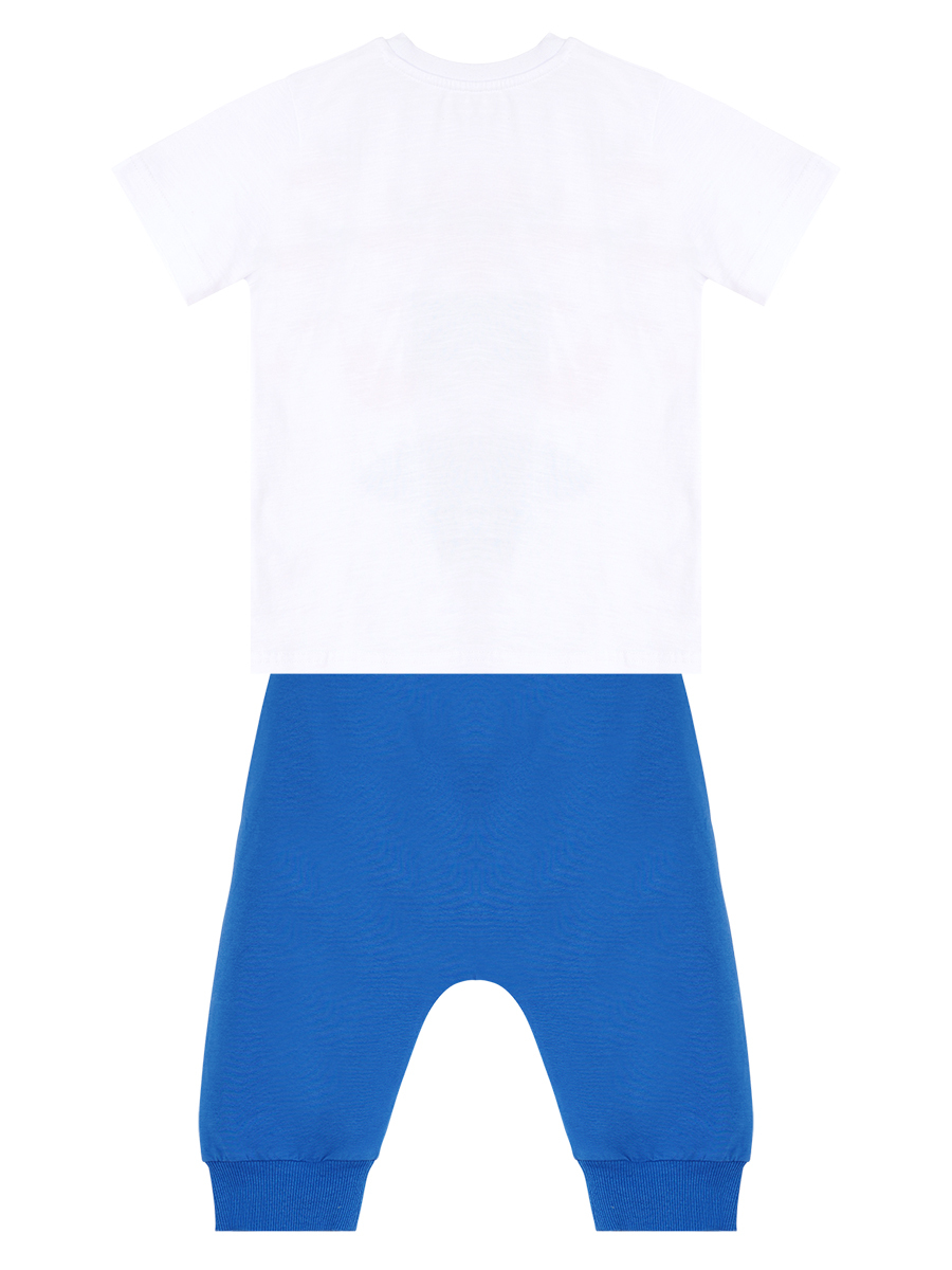 2 parça erkek takım. Pamuklu, flamlı penye kumaştan, beyaz t-shirt. Üzeri komik tilki baskılı. Düşük ağ kesimli, pamuklu kumaştan kapri boy pantolon. Önünde kanguru cebi vardır. Beli lastik ve kordonludur. Tüm Denokids ürünleri çocuk güvenlik kurallarına uygun olarak üretilmekte ve iğne dedektörlerinden geçmektedir. Üst: %100 Pamuk - Alt: %92 Pamuk %8 Elastan