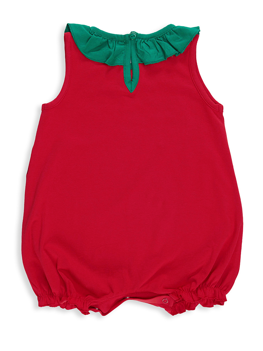 Pamuklu penye kumaştan, çıtçıtlı kız bebek tulum. Ağındaki çıtçıtlar sayesinde kolayca giyilip çıkarılabilir. Tulumun üzerinde çilek baskısı vardır. Yakası fırfırlıdır. Tüm Denokids ürünleri çocuk güvenlik kurallarına uygun üretilmekte ve tek tek iğne dedektörlerinden geçmektedir. %91 Pamuk %9 Elastan