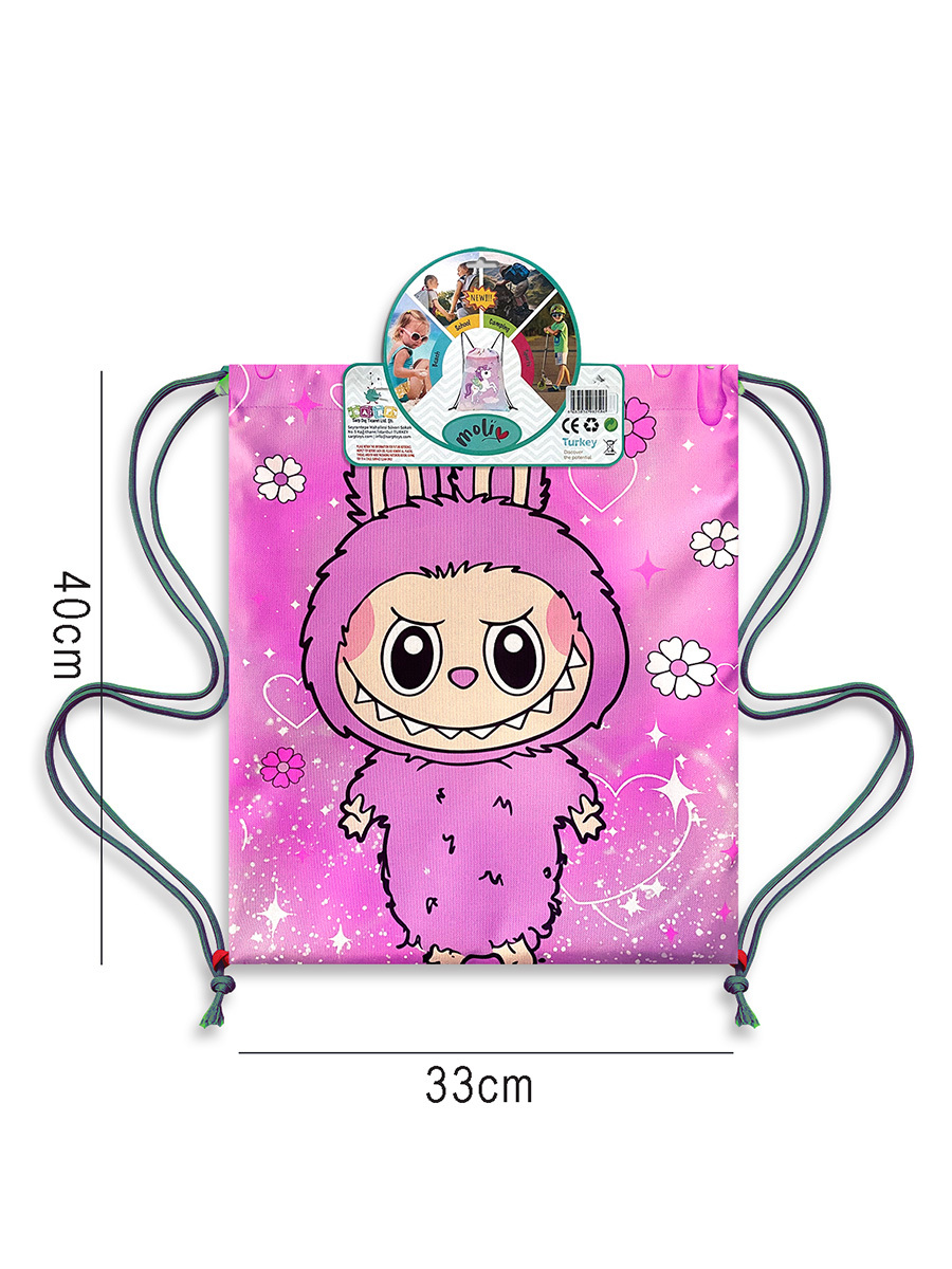 Çocukların favorisi olacak, pembe renkli ve sevimli karakter baskılı yeşil ipli sırt çantası! Okulda, denizde, havuzda, sporda veya günlük aktivitelerde pratik kullanım sunan, dayanıklı ve hafif tasarımıyla öne çıkan bu çanta, tarzınızı eğlenceli bir şekilde tamamlar. %100 Polyester