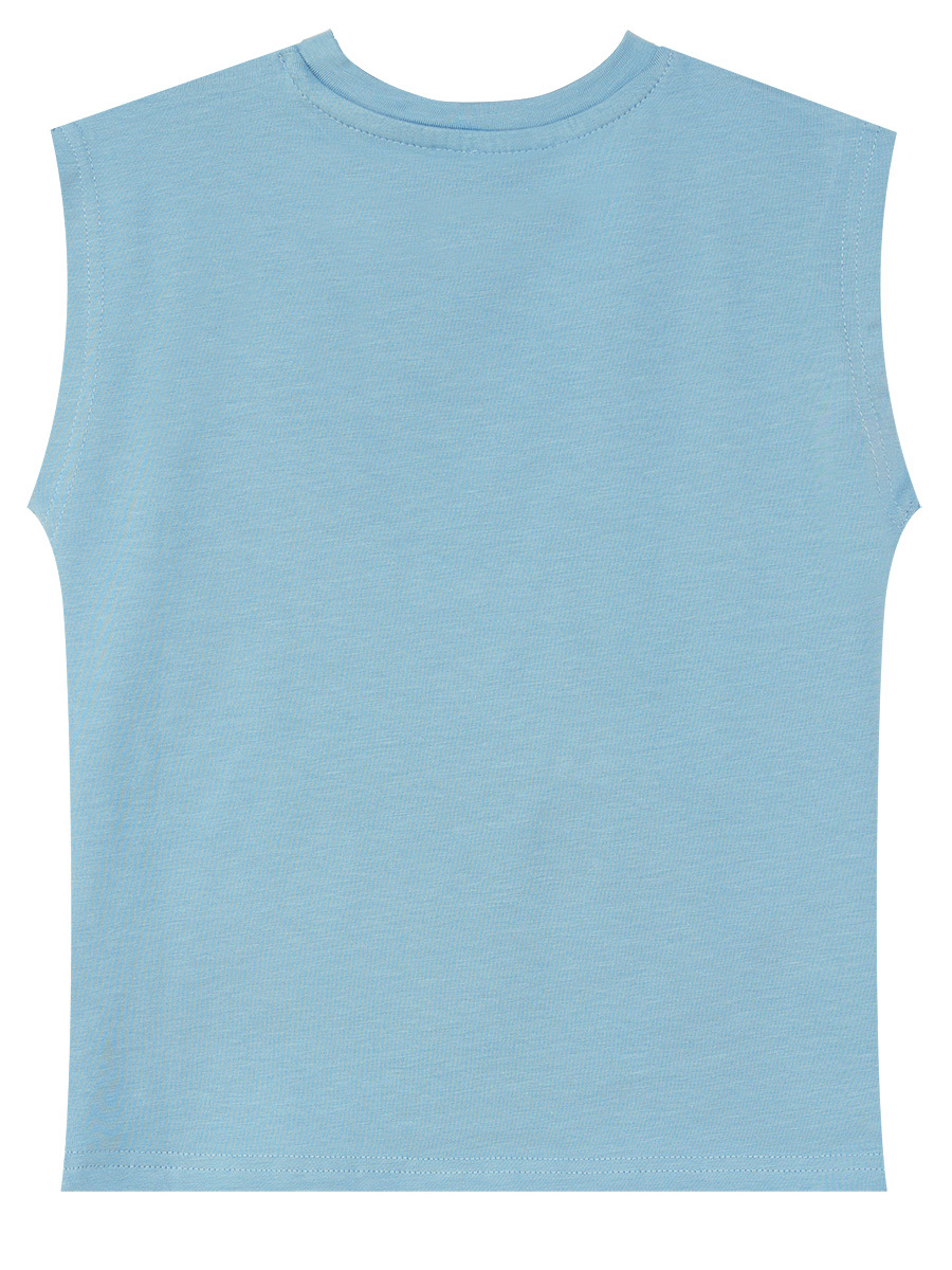 2 piece set. Cotton jersey, sleeveless t-shirt with a print on and cotton shorts with camo pattern on and side pockets.