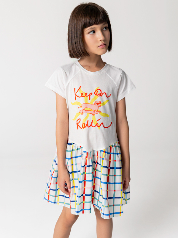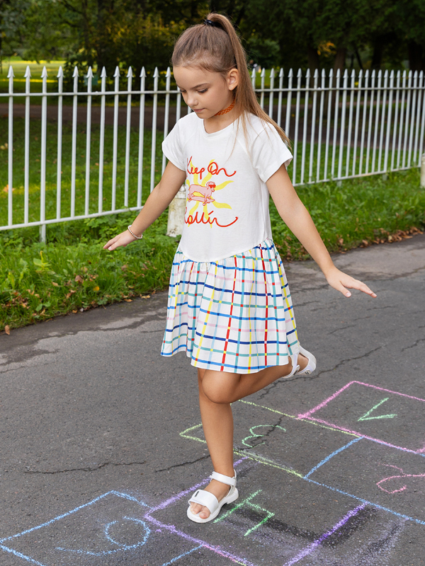 Tshırt Gövdeli Pamuk Kloş Etekli Kız Çocuk Elbise