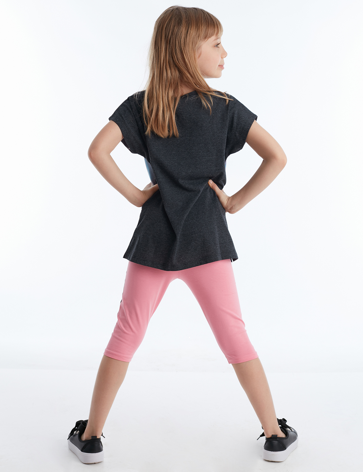 2 parça kız çocuk takım. Unicorn baskılı t-shirt ve pembe tayt. Alt: %92 pamuk %8 elastan, Üst: %95 Polyester %5 elastan