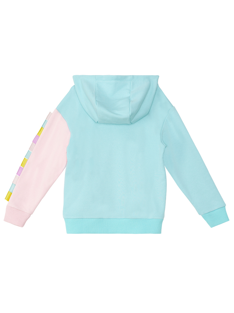 Girl hoodie with a unicorn bunny applique on. Colorful ribbons on single arm. All Denokids products are produced within kids safety guidelines and dedected by needle dedectors.