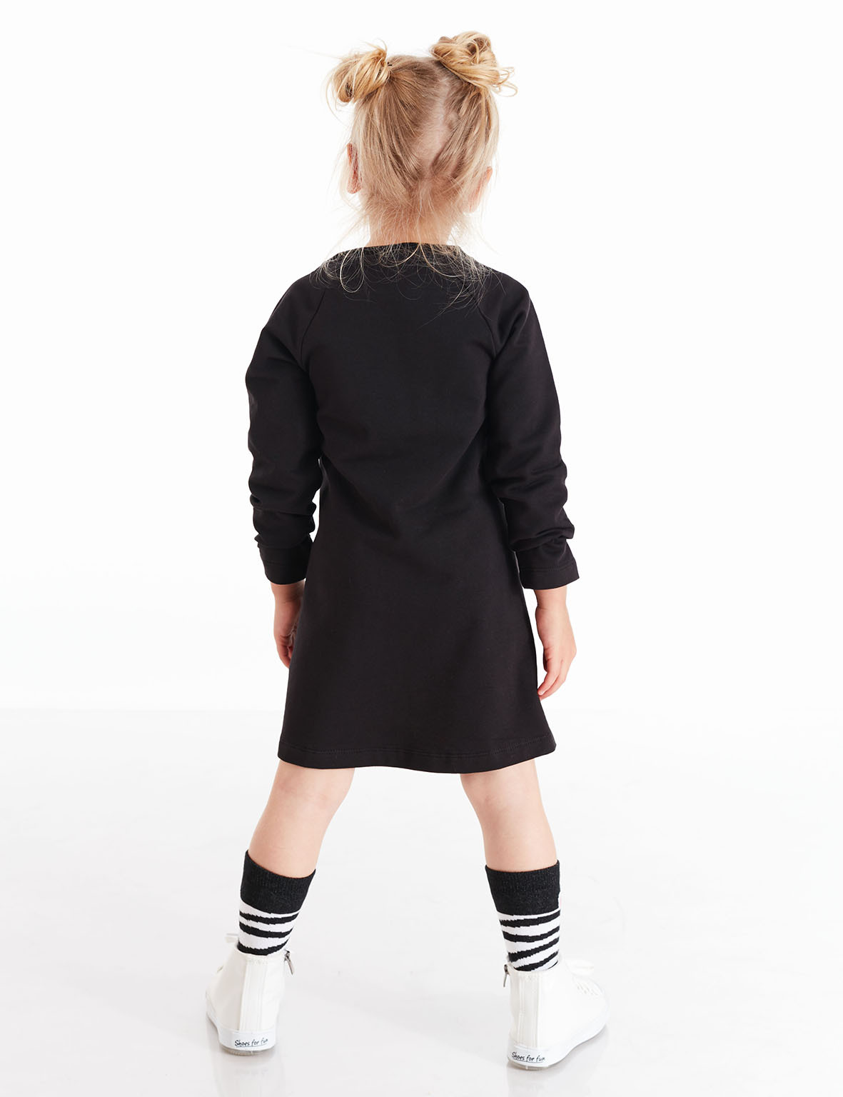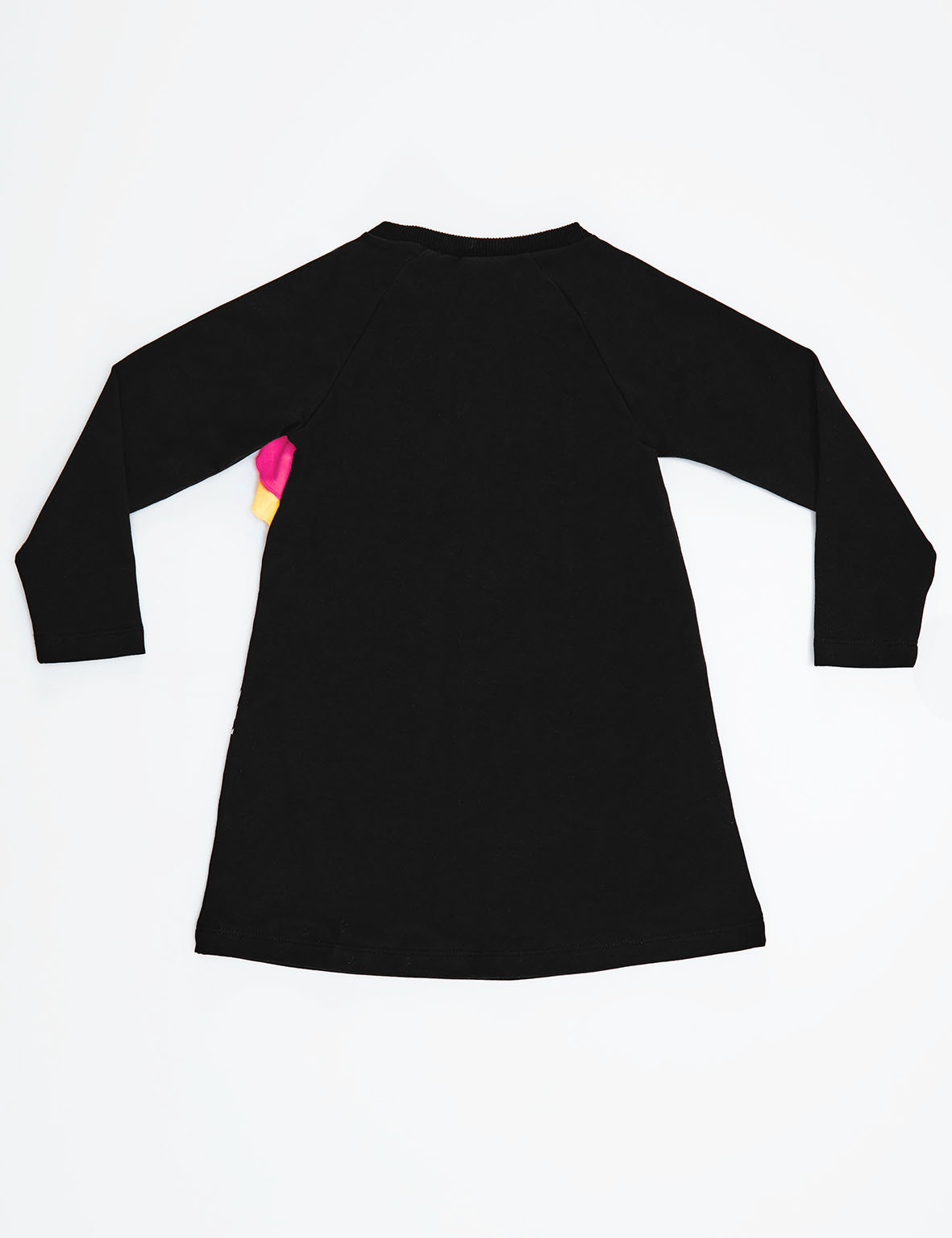 Pamuklu kumaş üzerine, unicorn zebra baskılı, reglan koldan zebranın yelesi gibi çıkan 2 kat fırfırlı elbise. %96 Pamuk %4 Elastan