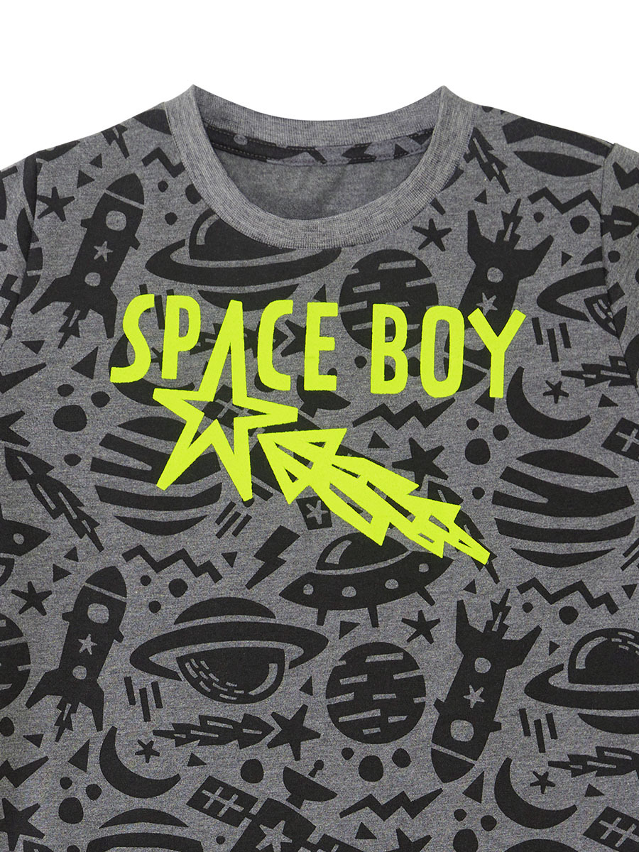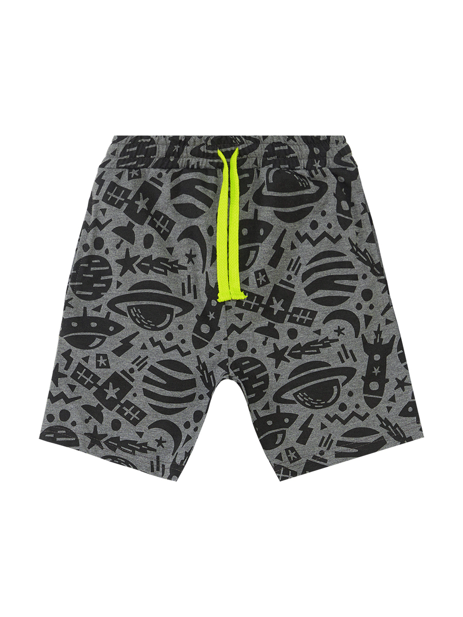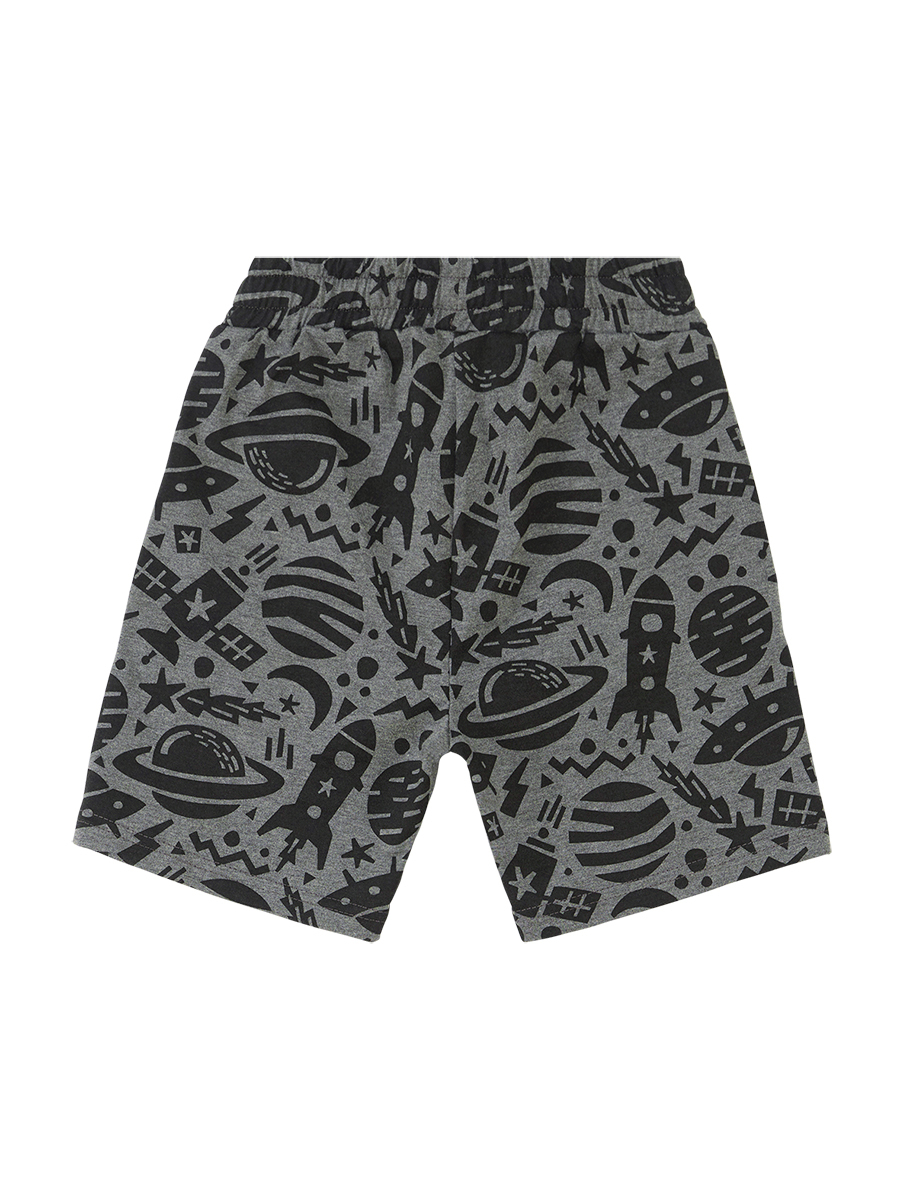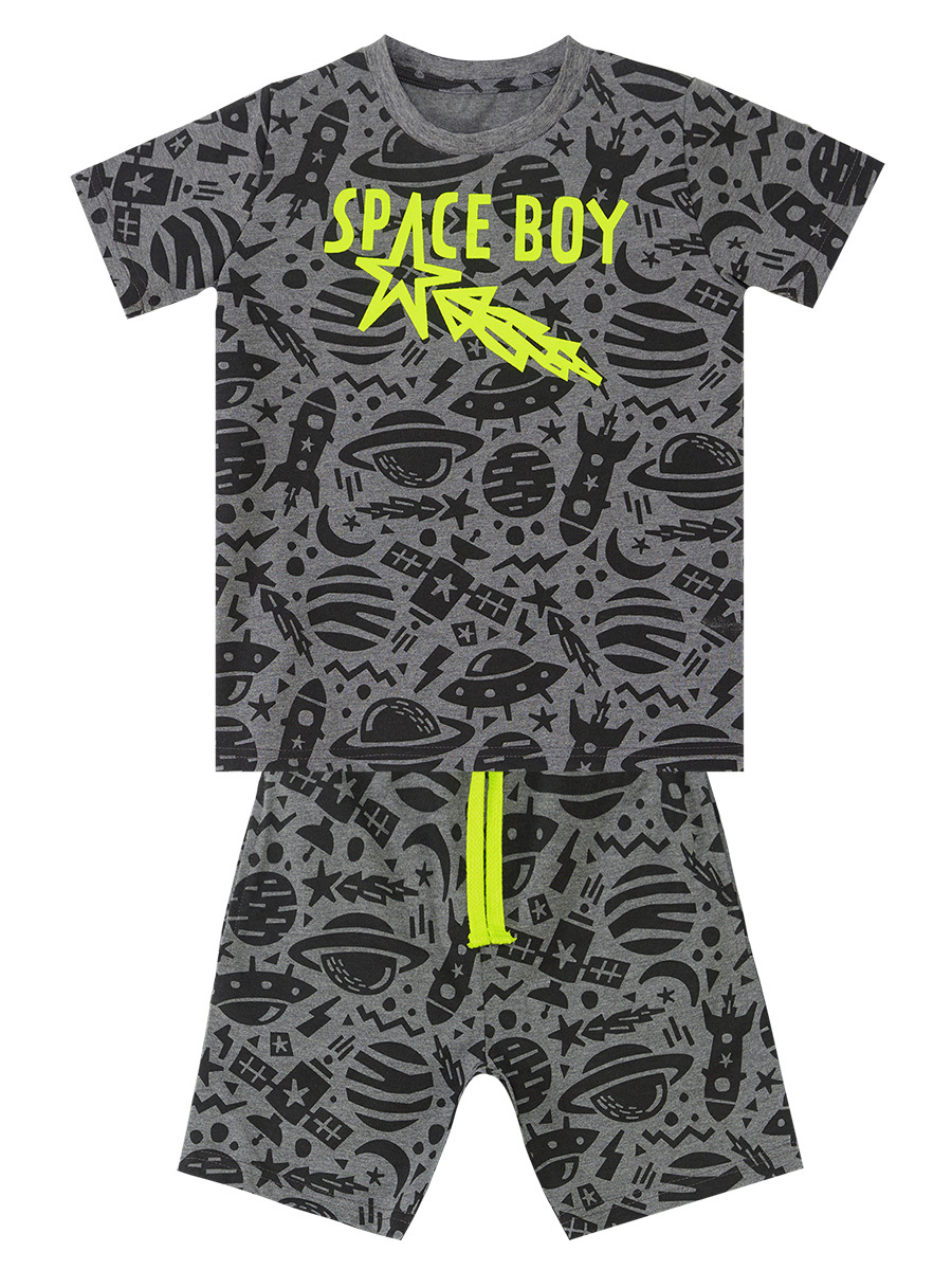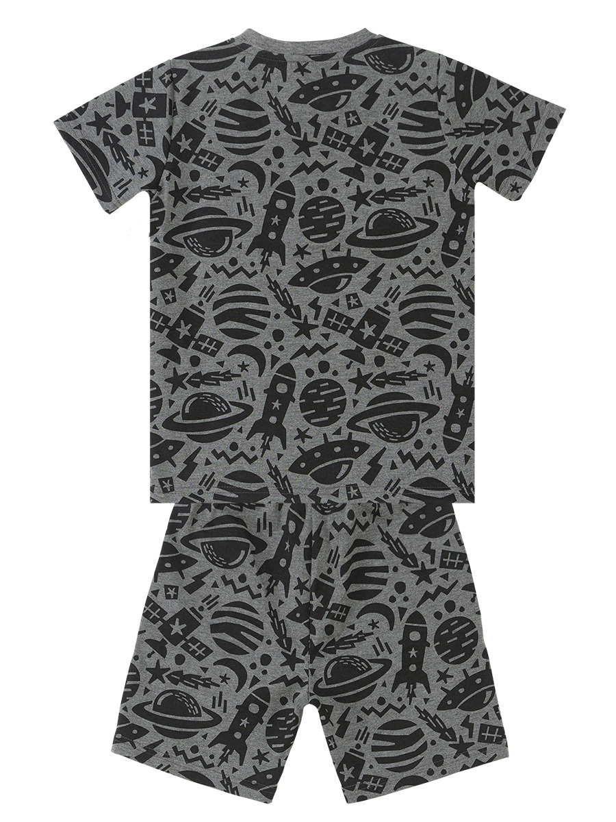 2 parça takım. Pamuklu penye kumaştan t-shirt ve şort. Üzeri uzay deseni baskılıdır. Şort 2 ceplidir. Beli lastik ve kordonludur. Tüm Denokids ürünleri çocuk güvenlik kurallarına uygun üretilmekte ve tek tek iğne dedektörlerinden geçmektedir. %65 Pamuk %35 Polyester