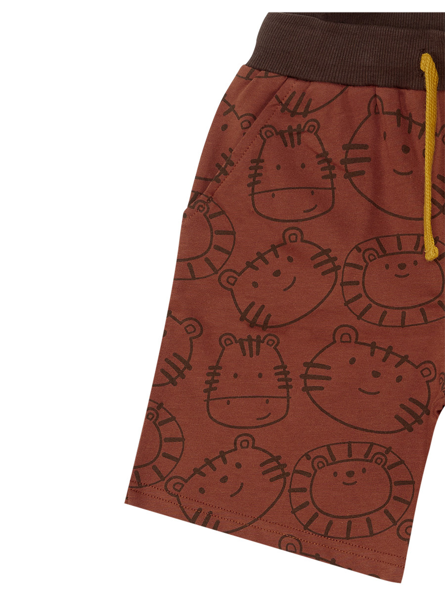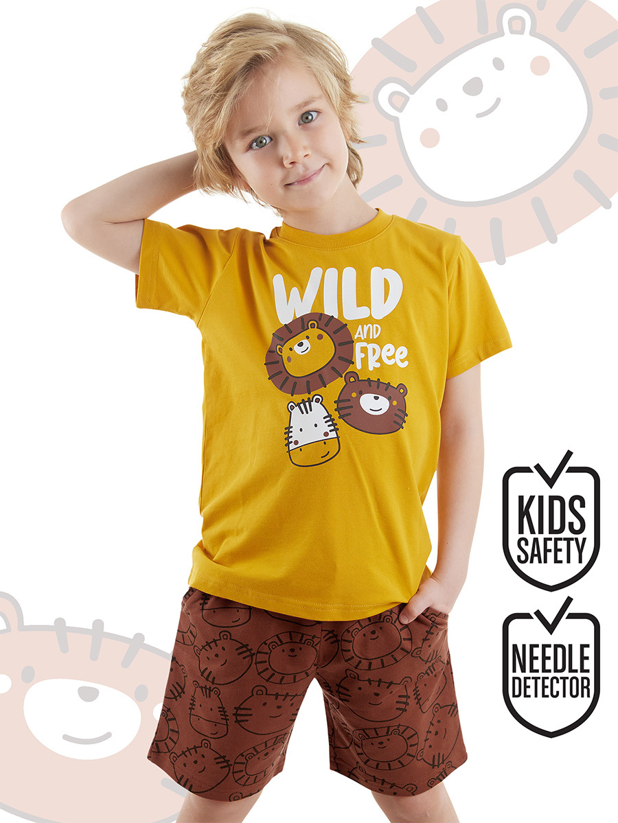 2 parça takım. Pamuklu penye kumaştan, hardal renk t-shirt. Üzeri sevimli hayvanlar baskılıdır. Şort pamuklu kumaştan üretilmiştir. 2 ceplidir. Beli lastik ve kordonludur. Tüm Denokids ürünleri çocuk güvenlik kurallarına uygun üretilmekte ve tek tek iğne dedektörlerinden geçmektedir. Üst: %95 Pamuk %5 Elastan - Alt: %100 Pamuk