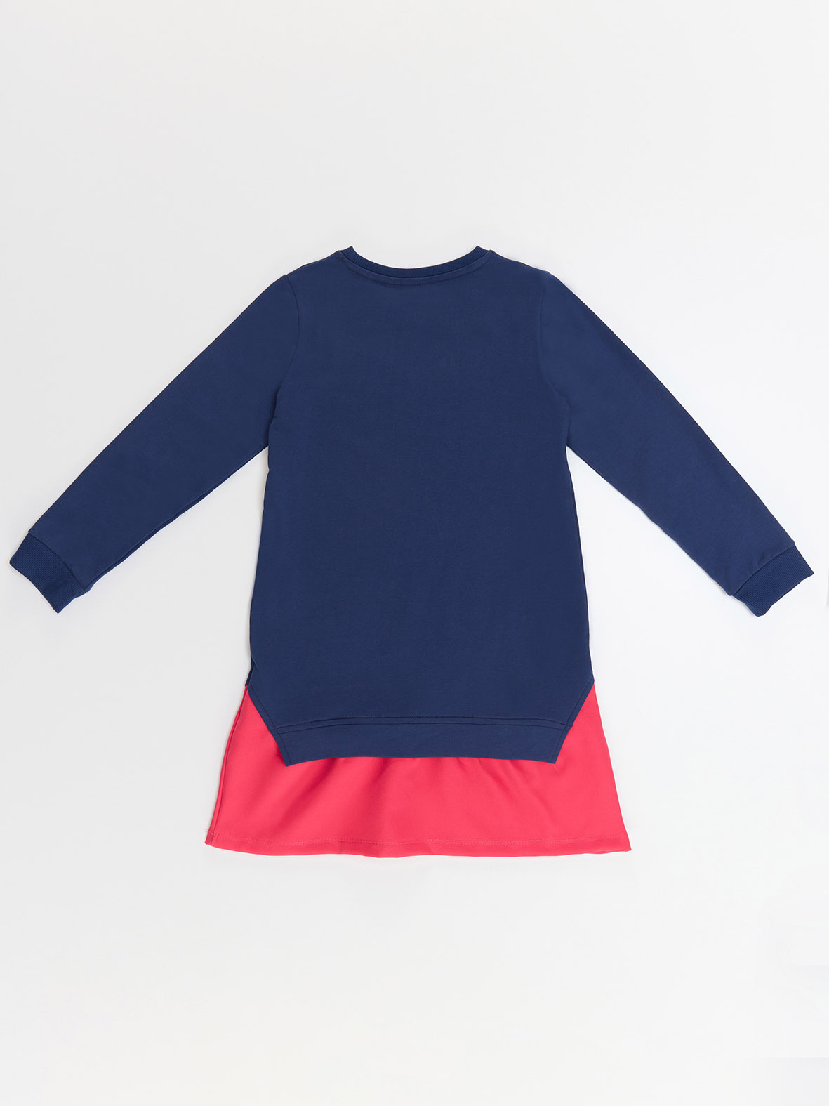 Orta kalın, pamuklu penye kumaştan önü paten baskılı, kız çocuk elbise. Etekleri asimetrik kesimdir ve dokuma kumaştan ek parça detaylıdır. Tüm Denokids ürünleri çocuk güvenliği düşünülerek üretilmiştir ve iğne dedektörlerinden geçirilmiştir. Üst: %95 Pamuk %5 Elastan