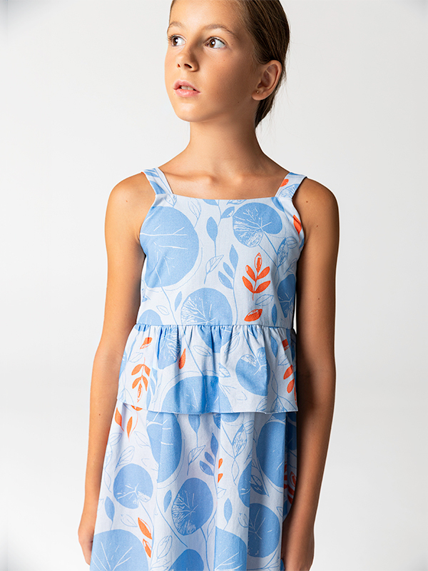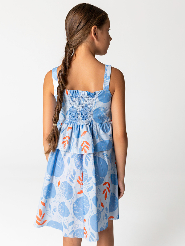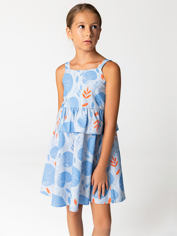 Yaprak Desenli Pamuklu Askılı Kız Çocuk Elbise