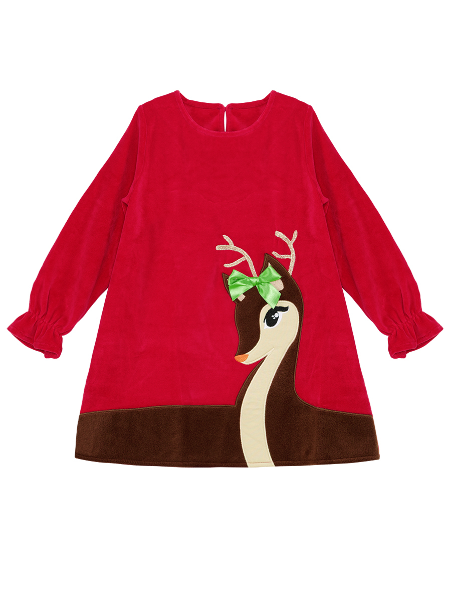 Bu yumuşacık kırmızı kadife yılbaşı elbisesi, kız çocuklarının yeni yıl kutlamalarına neşe katması için özel olarak tasarlandı. Sıcacık dokusu sayesinde soğuk günlerde rahat ettiyor; hafif esneyen yapısı ise gün boyu özgürce hareket etmelerini sağlıyor. Elbisenin üzerinde yer alan büyük geyik aplikesi, Denokids’in eğlenceli dünyasının en tatlı detaylarından biri. Geyiğin başına eklenen üç boyutlu saten kurdele, tasarımı canlandırıyor ve kırmızı yeşil yılbaşı renkleri çarpıcı bir görünüm yaratıyor. Hem yılbaşı partileri hem okul kutlamarı için mükemmel bir seçenek.