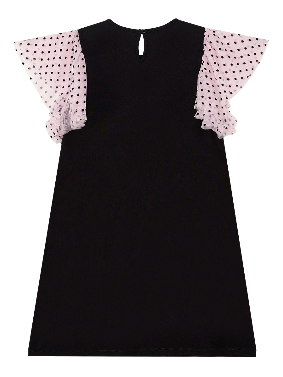 Kuğu Kız Çocuk Tüllü Fırfırlı Puantiyeli Kız Siyah Elbise